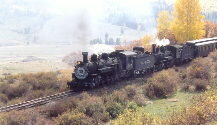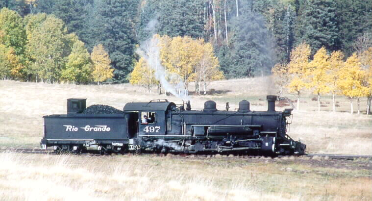 497 ready to cross the trestle at Lobato on October 13, 2002.