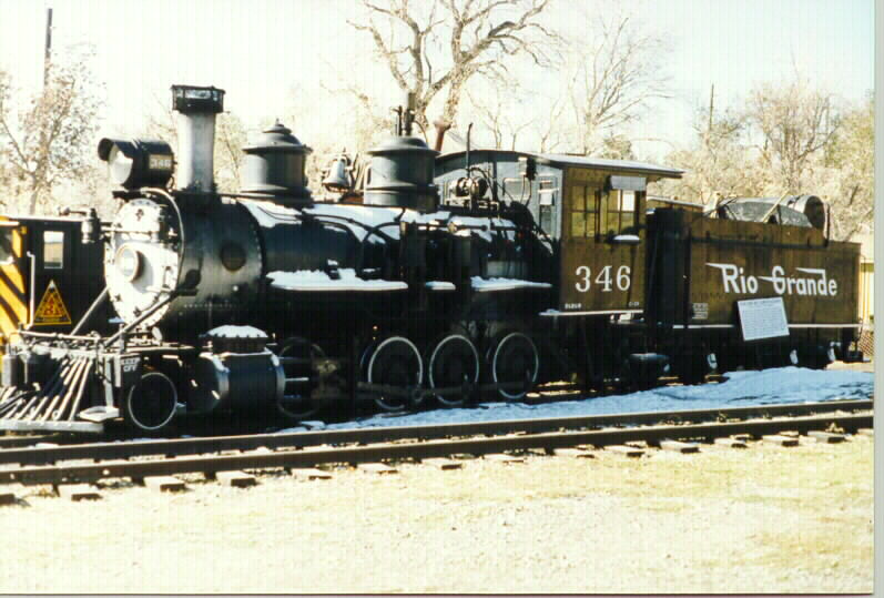#346 with a light dusting of snow at the Colorado Railroad Museum on November 4, 1995.