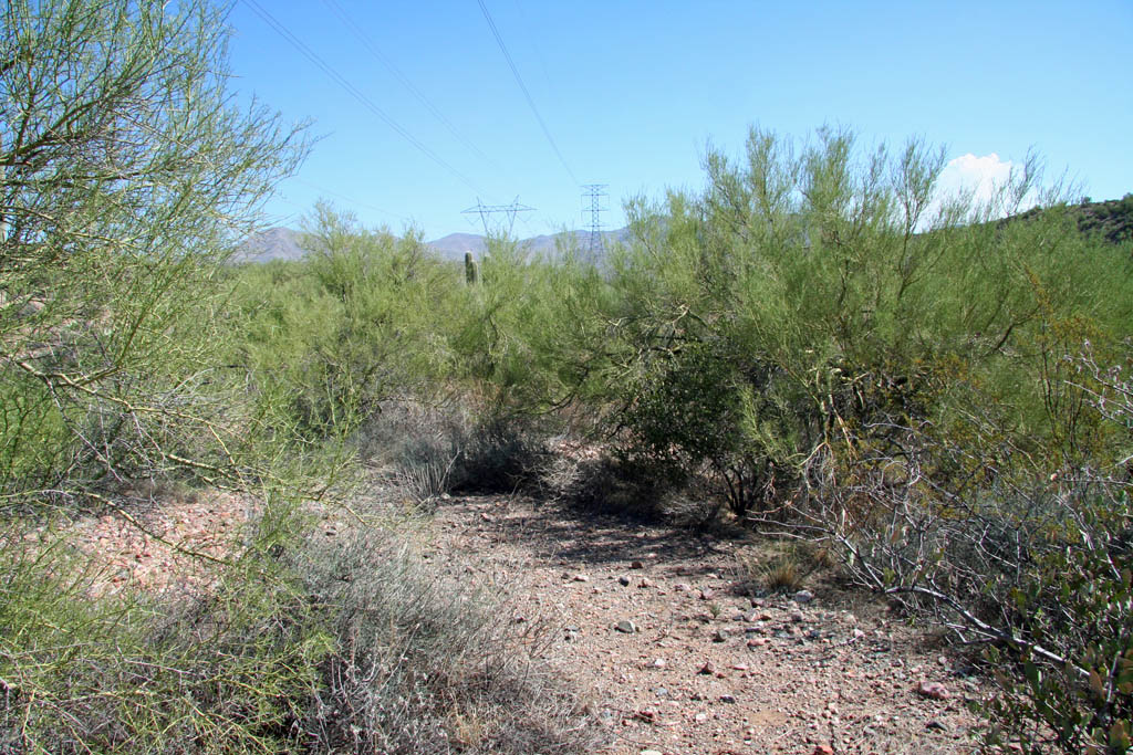 The path degrades quickly as the palo verde and scrub brush invade the