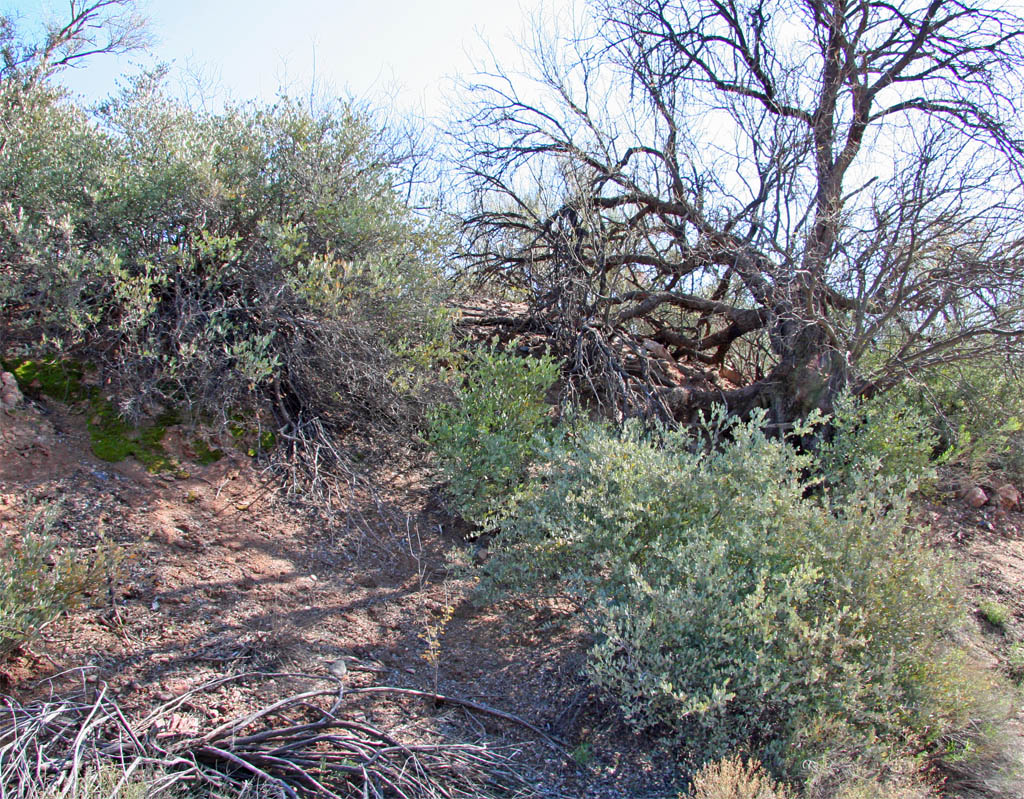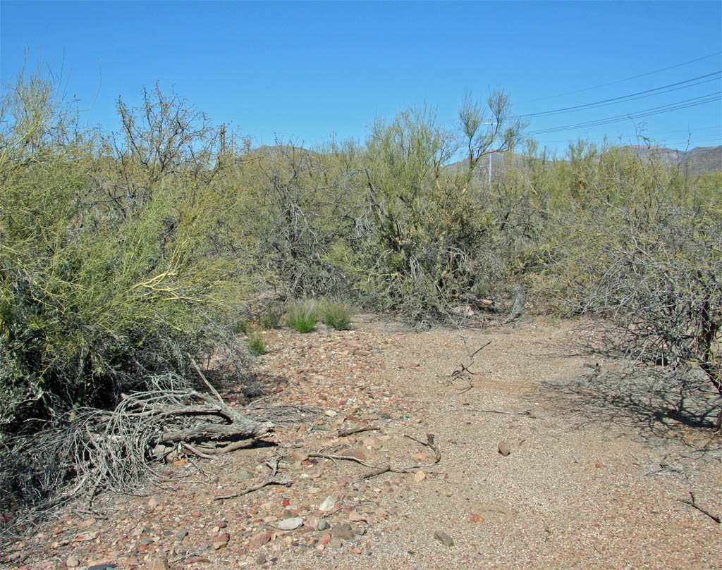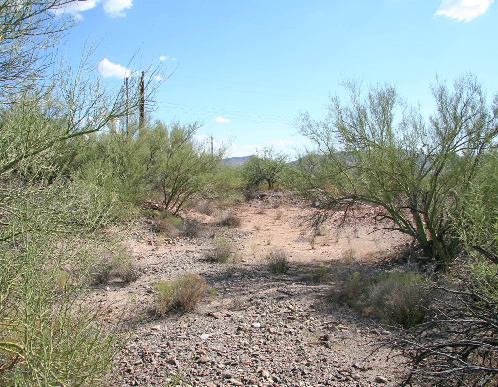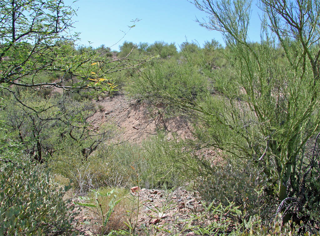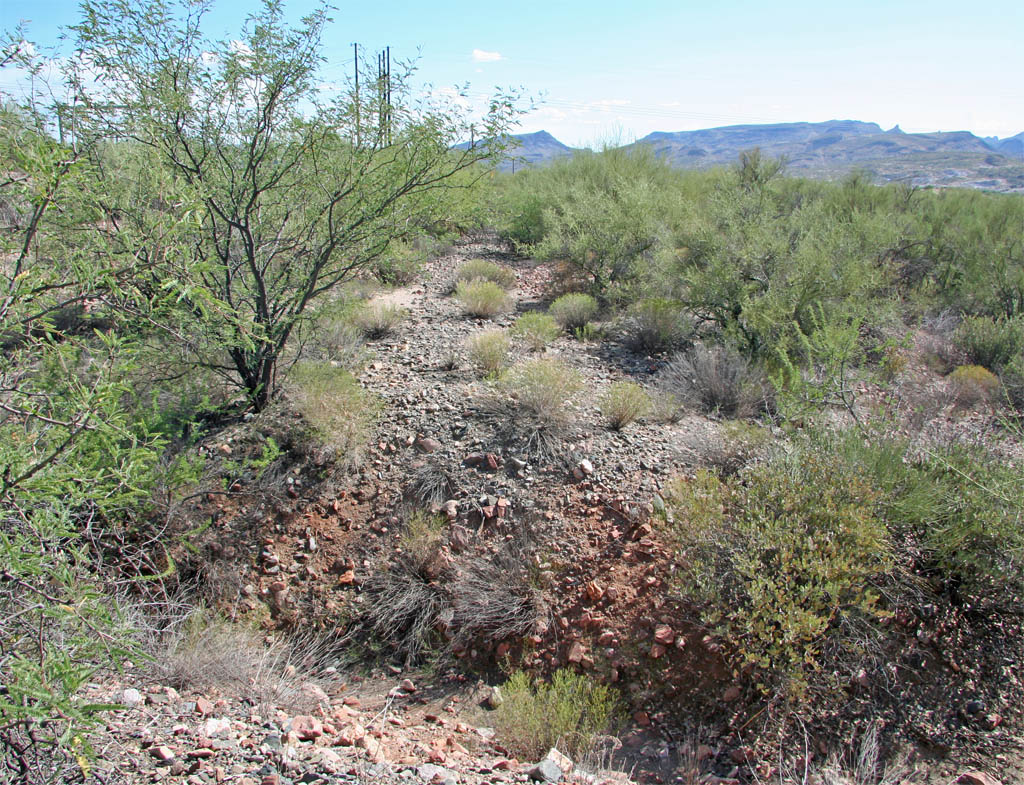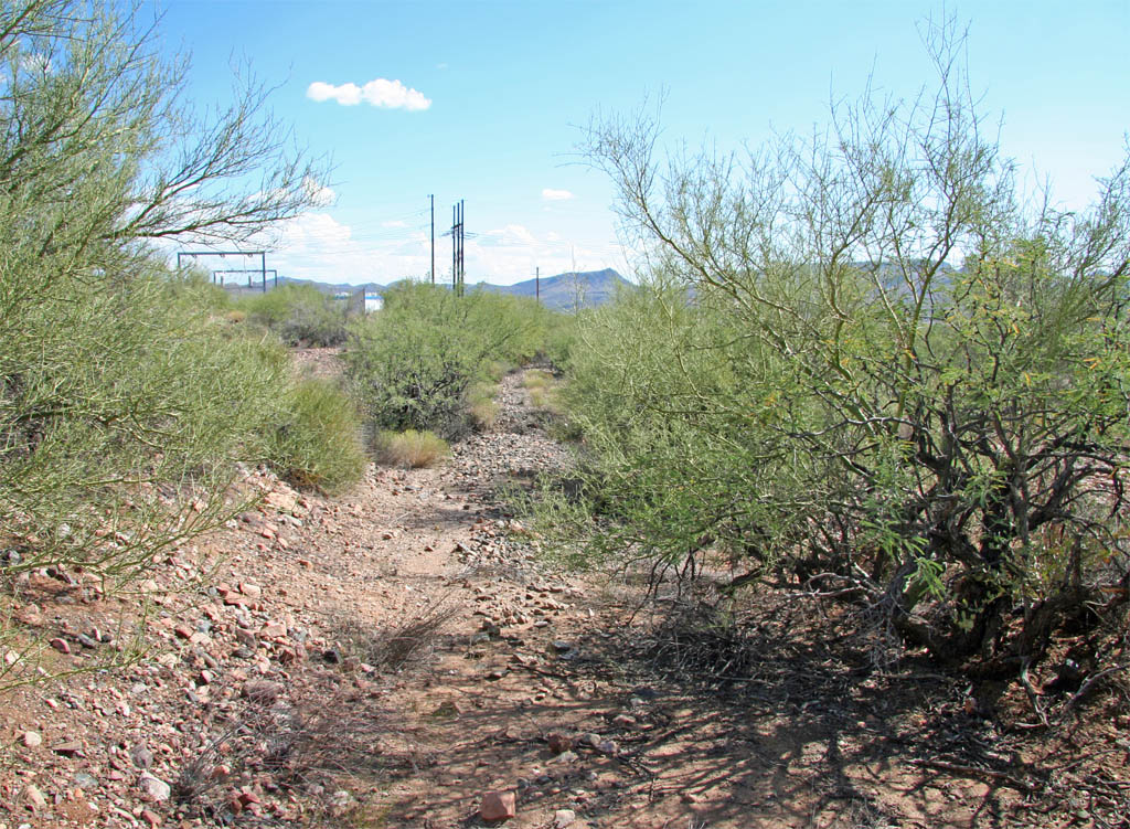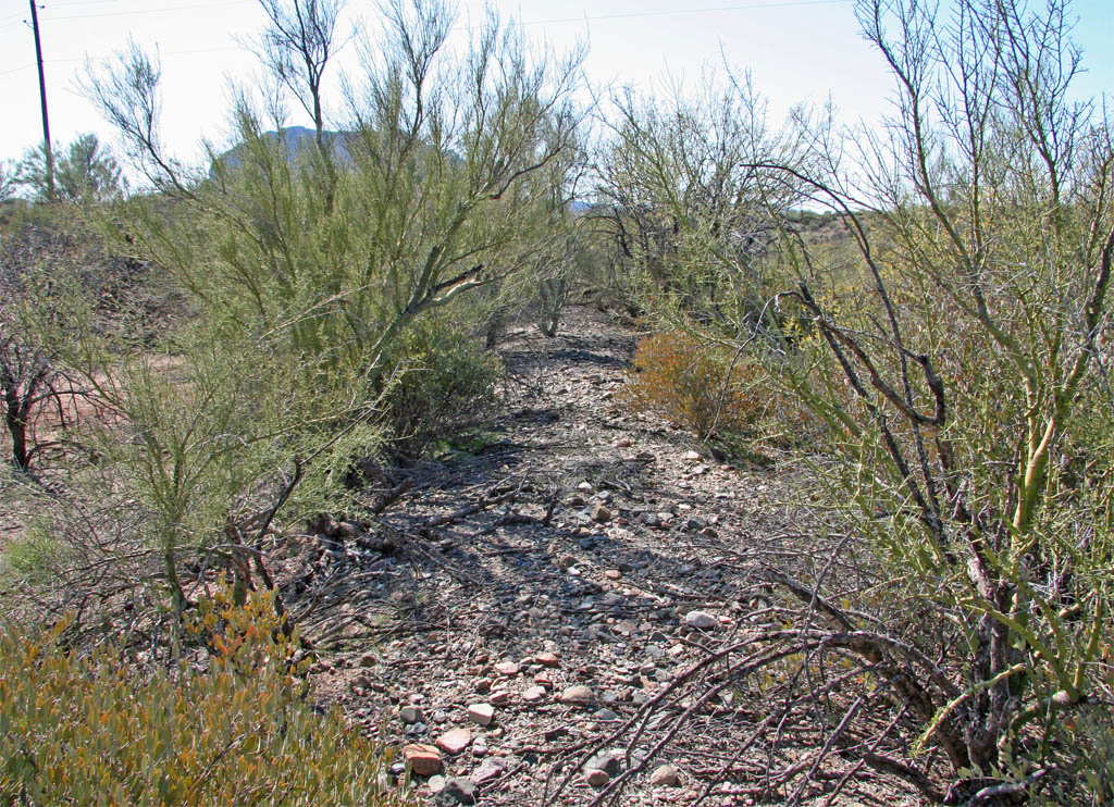 approach to the bridge crossing the wash. I didn't find any remnants of the