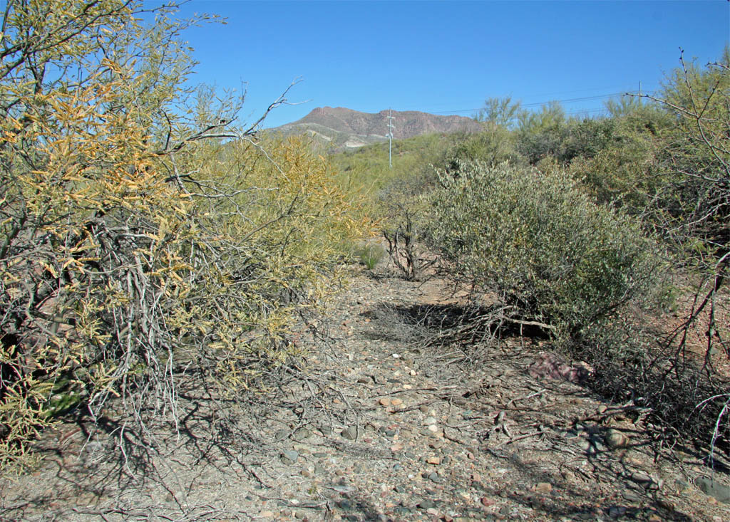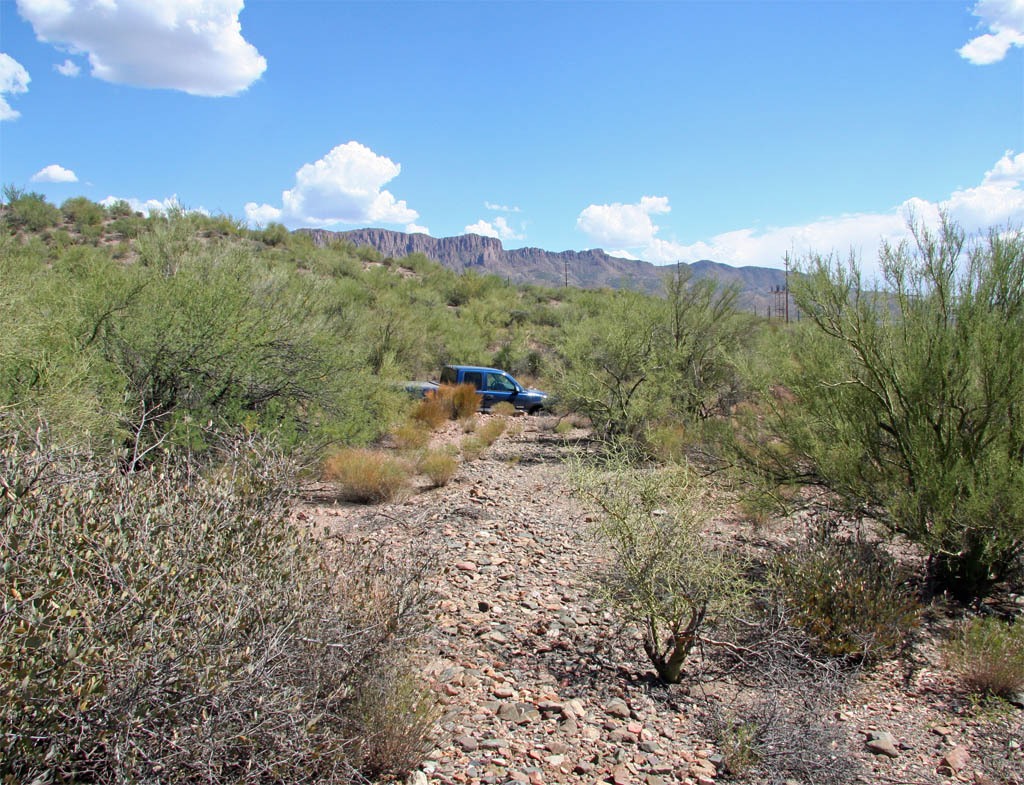 to enter the mill site. Picketpost Mountain can be seen standing prominently