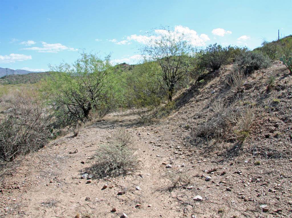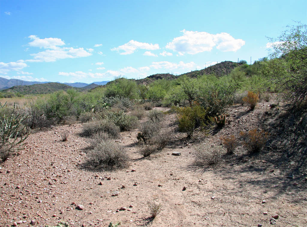 onto an open spot on the grade. Queen Creek is to the left and the main road