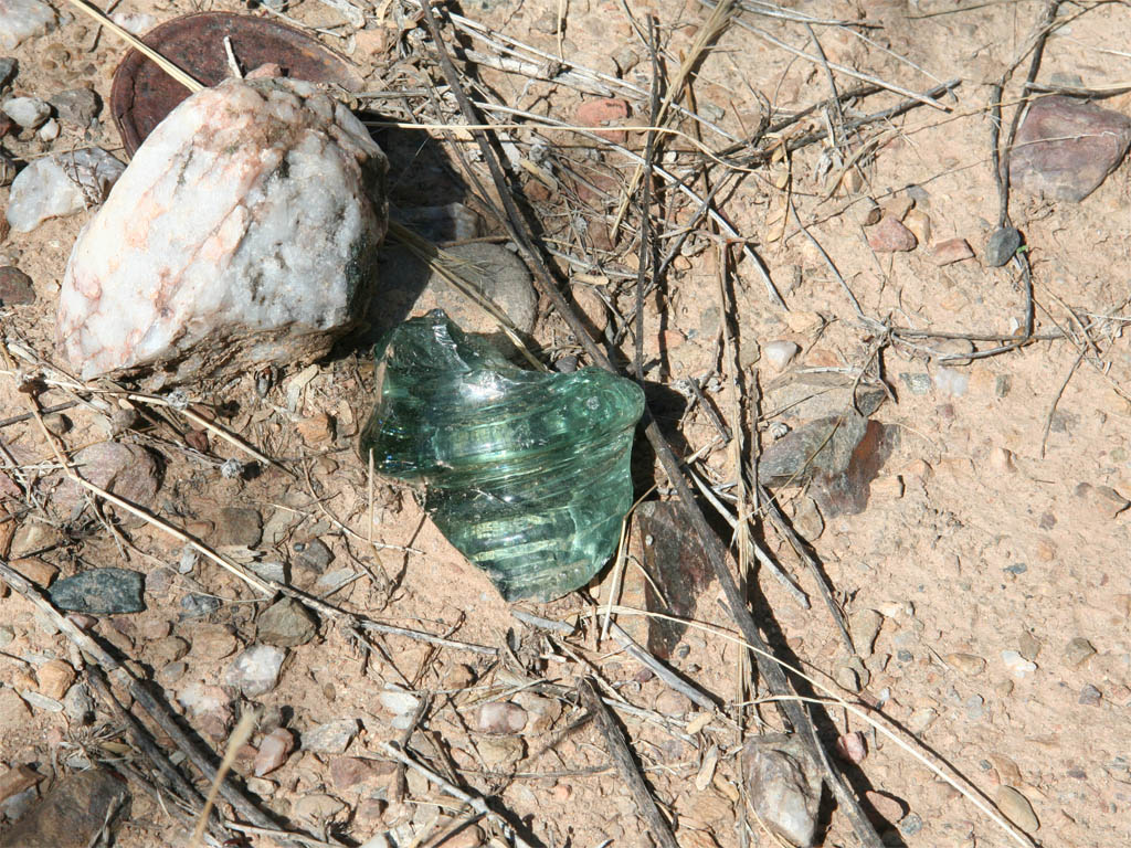 Part of an old insulator was found along the grade in this section. I