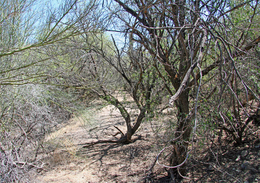 Salt Cedars on the left mark the location of dwellings that were adjacent
